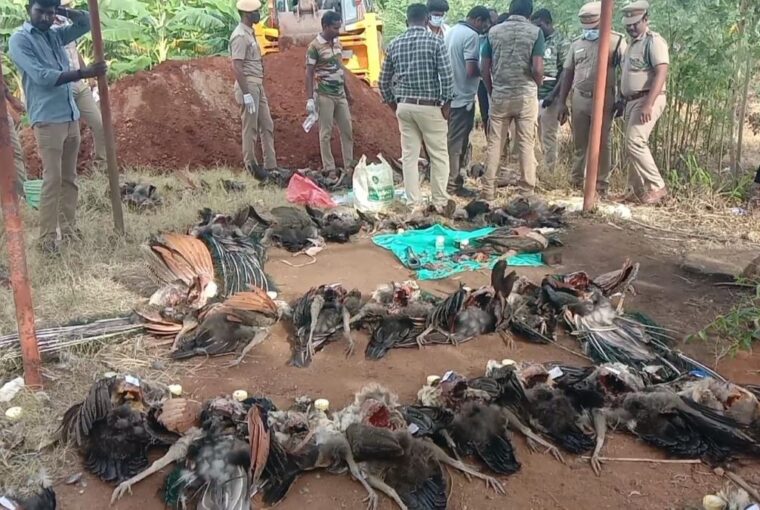 சங்கரன்கோவிலில் 50க்கும் மேற்பட்ட மயில்கள் உயிரிழந்த சம்பவம் பரபரப்பை ஏற்படுத்தியுள்ளது. தென்காசி மாவட்டத்தில் அடிக்கடி வனவிலங்குகள் வேட்டையாடுவதும் தொடர்கதையாகி வருகிறது. அதனை தடுக்க வேண்டிய வனத்துறையினரே மெத்தனமாகவும், அலட்சிய போக்குடனும் செயல்பட்டு வருவதாக குற்றசாட்டுக்களை எழுப்புகின்றனர் வன ஆர்வலர்கள்.