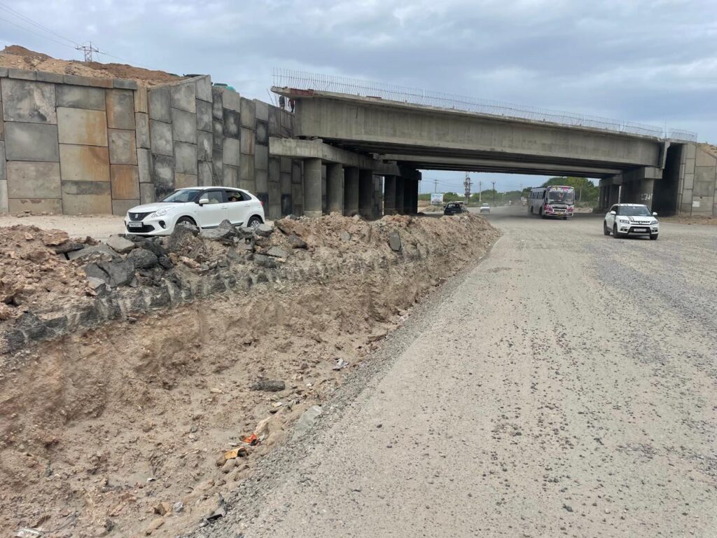 மேலும், இந்த நான்கு சாலைகளும் இணையும் இடத்தில் கிழக்கு-மேற்காக தரைமட்டப் பாலத்திற்கு கீழ் பெரிய குழியும் அதில் இரும்புக் கம்பிகளும் நீட்டிக்கொண்டு உயிர்பலி கேட்டவாறு உள்ளன. இந்த குழியை ஒட்டிய சாலையில் மெட்டல் மட்டுமே பரப்பப்பட்டு தற்காலிக சாலையாக உள்ளதால் இரு சக்கர வாகனத்திற்கு போதிய பிடிமானம் கிடைப்பதில்லை. இதனால் உடுமலை-தாராபுரம் செல்லும் இரு சக்கர வாகனங்களில் வருவோர்களுக்கு இந்த குழி எமன் தான் என்றால் அது மிகையல்ல!