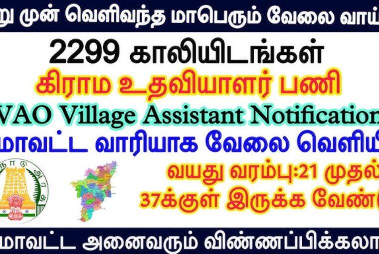 2,299 கிராம உதவியாளர் பணியிடங்களுக்கு வேலைவாய்ப்பு அறிவிப்பு. விண்ணப்பிக்க கடைசி தேதி ஆகஸ்ட் 5, 2025 – முழு விவரம்.